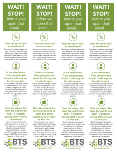 Here’s a monitor card for reminders focused on malware, but these are good for social engineering scams, too. Print it today and share with your co-workers, family & friends.
